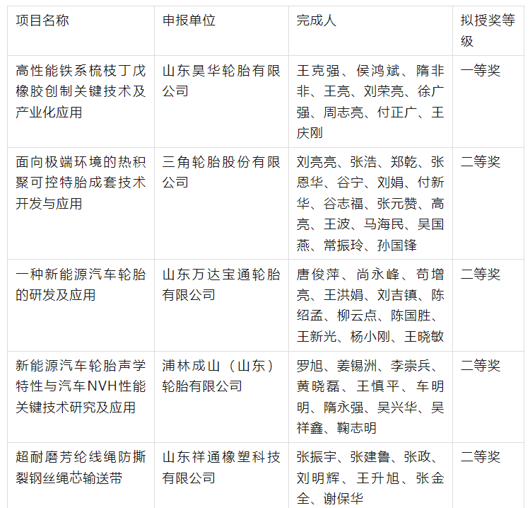 2024年度山東省橡膠行業(yè)科學技術獎擬授獎項目的公示