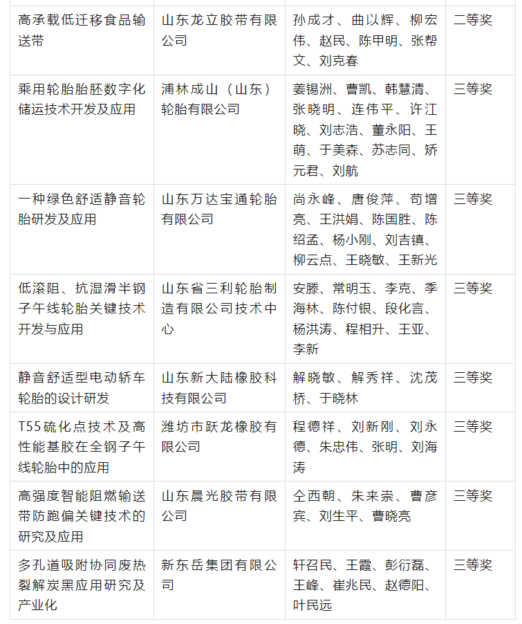 2024 年度山東省橡膠行業(yè) 科學技術獎擬授獎項目名單